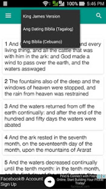 HOLY BIBLE OFFLINE - GRATIS är en komplett offline Bibelapp för din Android-telefon eller surfplatta. Detta är en användarvänlig app som låter dig läsa dina favoritbibelverser och berättelser i det format du föredrar. Den låter dig använda flera versioner av Bibeln, inklusive King James-versionen och många andra. Du kan också växla mellan versioner via rullgardinsmenyn. Du kan också använda appen för att bokmärka specifika verser och kapitel så att du enkelt kan återvända till dem senare. Den är mycket enkel att använda, med en enkel användargränssnitt, och du behöver inte installera några andra appar för att läsa din Bibel. Du kan också lägga till anteckningar till specifika verser och kapitel.